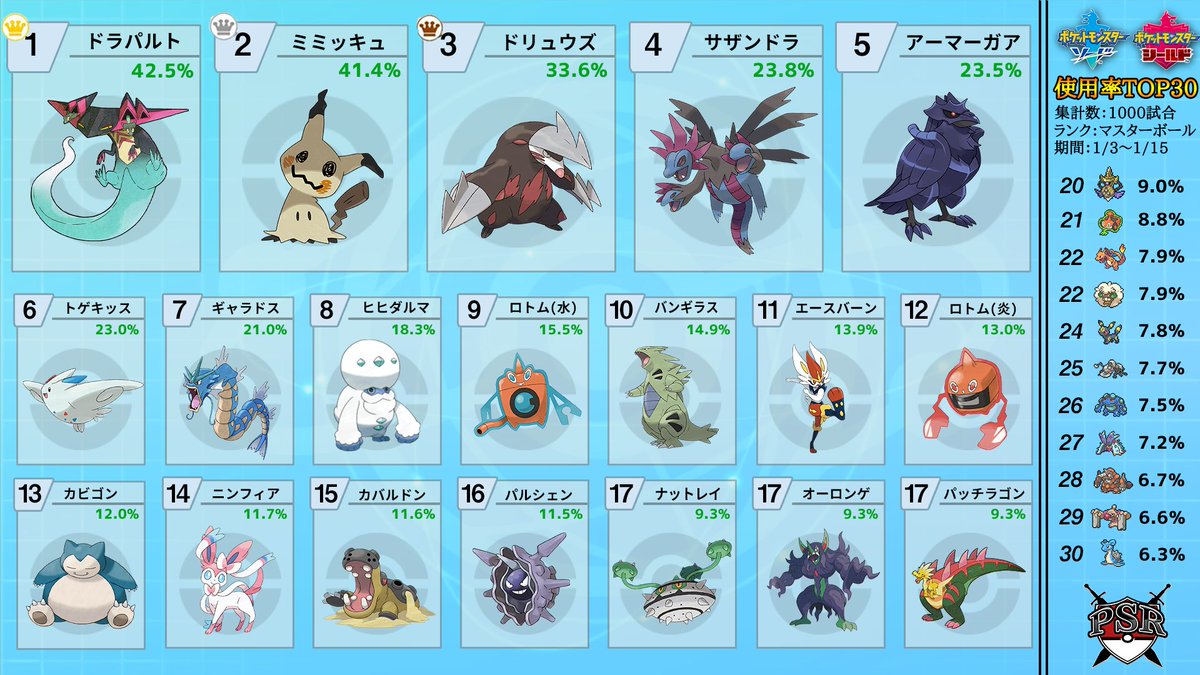 ポケモン ランクマッチの使用率ランキング最新版 年1月 が公開 上位の顔ぶれは安定の面子 あにまんch